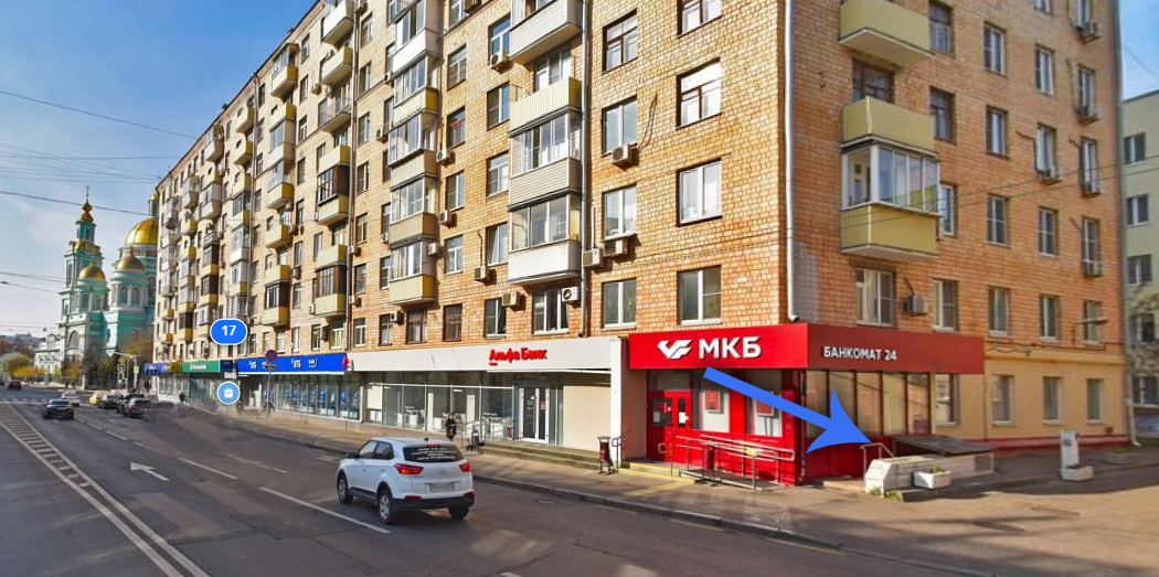 Вход в йога-студию рядом с Альфа и МКБ банками